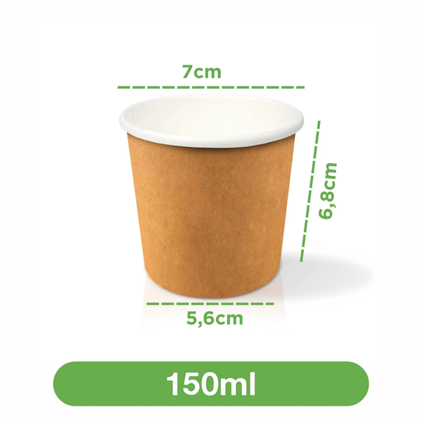 | Papel/Material: | Pote kraft 150ml (NÃO ACOMPANHA TAMPA) A tampa é vendida separadamente. |